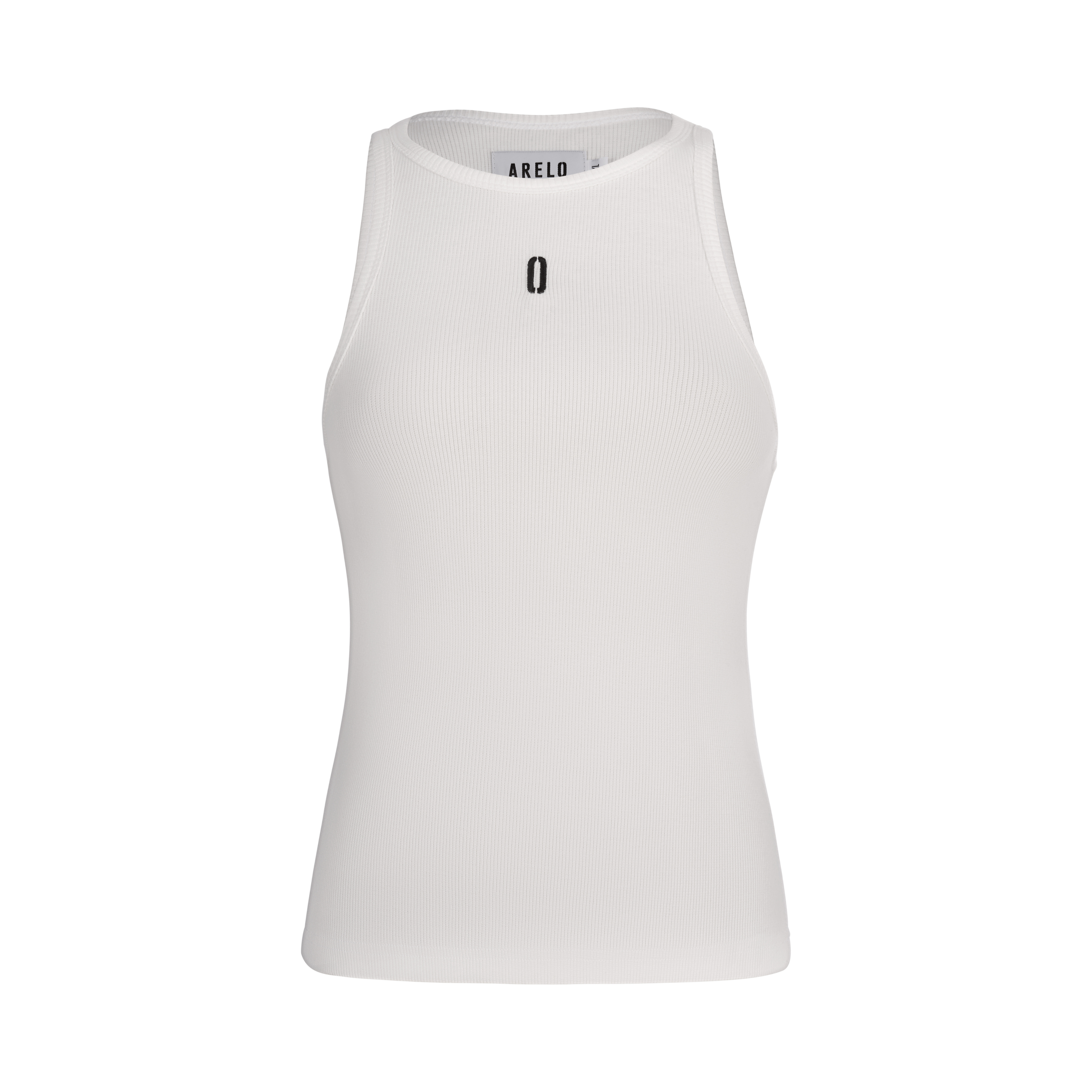 DESCRIPTION White rib-textured tank top made from organic cotton, providing softness and comfort. The design is complemented by a minimal embroidered emblem, adding an elegant and subtle accent, perfect for a stylish and comfortable everyday look.